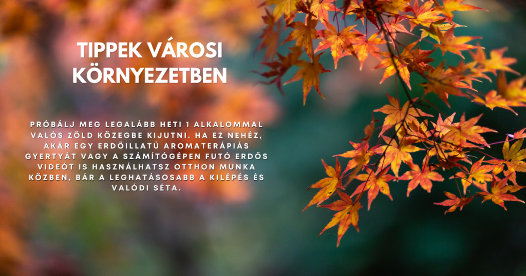 Az igazság, hogy egy nagyvárosban élve kicsit többet kell terveznünk. Ha az erdő távol van, beférhet a napi programba egy parkos séta, hétvégén pedig egy nagyobb kirándulás. Egy másik lehetőség: virtuális természetterápia, például erdei hangok és videók hallgatása egy kényelmes fotelben. Bár ez nem pótolja az igazit, néhány tanulmány szerint még a természethangok is csillapíthatják a kortizolt.
